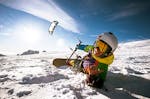 Zunächst übst du den Umgang mit dem Kite, dann schnallst du Ski oder Snowboard an und ab geht die Post.