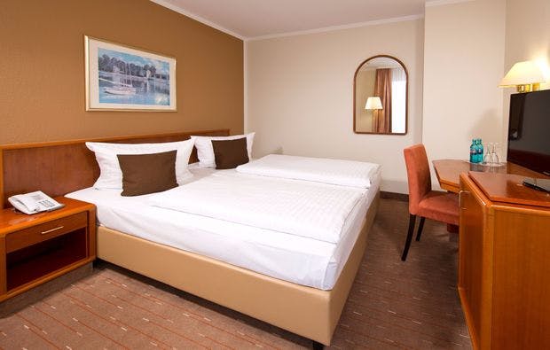Die über 1200 Jahre alte Stadt Halle an der Saale ist für ihren Salzhandel bekannt. Für Touristen gibt es eine gute Mischung aus Kultur, Kunst, Erholung und Einkaufsmöglichkeiten. 2 Nächte verbringt ihr im 3 Sterne TRYP by Wyndham Halle-Hotel. Zur Begrüßung gibt es ein Getränk aufs Haus. Euer Doppelzimmer ist geräumig und individuell eingerichtet. Das Hotel verfügt über ein Restaurant, in dem euch morgens ein leckeres Frühstücksbuffet erwartet. In der hoteleigenen Bar könnt ihr beiden den Abend gemütlich ausklingen lassen. Außerdem gibt es ein kleines Fitnessstudio, in dem ihr euch richtig auspowern könnt.