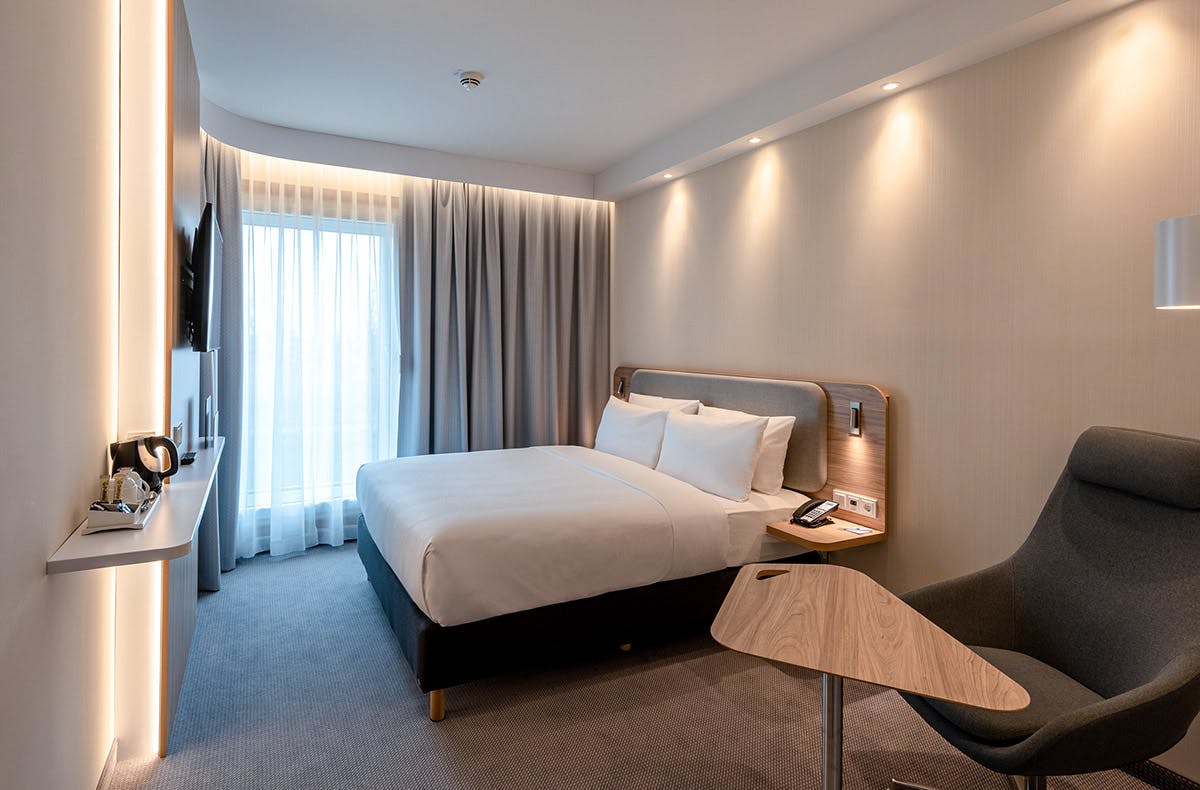 Das Holiday Inn Express München Nord bietet euch einen großartigen Aufenthalt in der wunderschönen Landeshauptstadt Bayerns. Das Hotel liegt im Münchener Norden im Stadtteil Schwabing-Freimann und ist ausgestattet mit 270 Zimmern und Suiten verteilt auf 6 Etagen. Euer modern eingerichtetes Doppelzimmer bietet euch ein eigenes Bad, Queensize Bett und eine Kaffee- und Teestation.