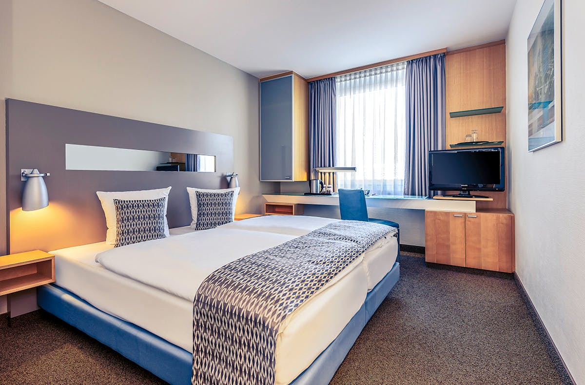 Die Adresse in Düsseldorf: Das 3-Sterne Mercure Hotel Düsseldorf Zentrum im citynahen Stadtteil Derendorf. Alle 68 Zimmer haben kostenloses Wi-Fi, sind teilweise klimatisiert und verfügen über eine Kaffee- und Teestation sowie einen Safe. Rhein und Zooviertel sind nur wenige hundert Meter entfernt, den beliebten Szenebezirk Pempelfort erreicht ihr nach einem Spaziergang. Eine Fahrt in die Altstadt, zur Königsallee, Messe oder zum Hauptbahnhof dauert mit der U-Bahn oder mit dem Taxi nur wenige Minuten.