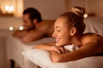 Zu zweit liegt ihr gemütlich nebeneinander, während ihr euch von den Masseuren mit sanften Bewegungen und duftenden Aromaölen verwöhnen lasst. Seite an Seite kommt ihr bei Kerzenschein und leiser Musik in den Zustand purer Entspannung. Nachdem Körper und Geist im Einklang stehen, stoßt ihr mit einem Glas Prosecco auf euren Ausflug in den 7. Wohlfühlhimmel an.
